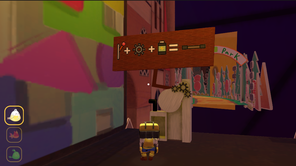 현재 목표인 다리 건설을 위해서는 저 표지판에 있는 재료들을 모아야합니다!