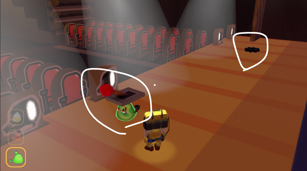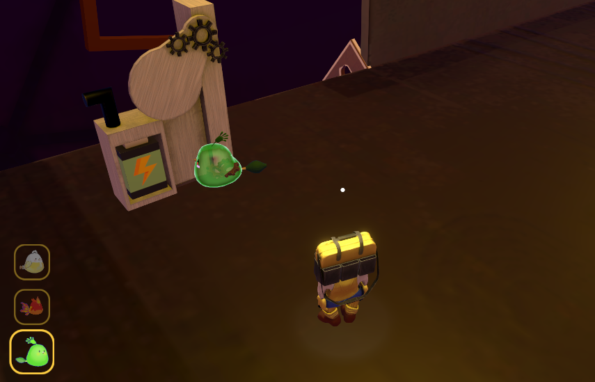 끈끈이 펫의 끈적이 스킬을 이용하여 물건을 옮길 수 있다는 사실을 강조하였습니다.