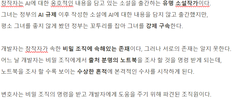 AI 규정법이라는 아예 세계관 자체의 새로운 법을 만들기 위해서 여러 법 자문을 참고하던 적도 있었는데 말이죠.