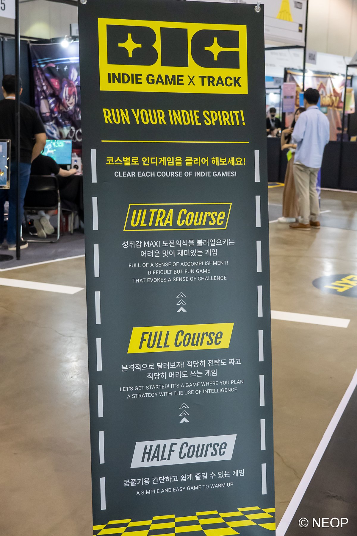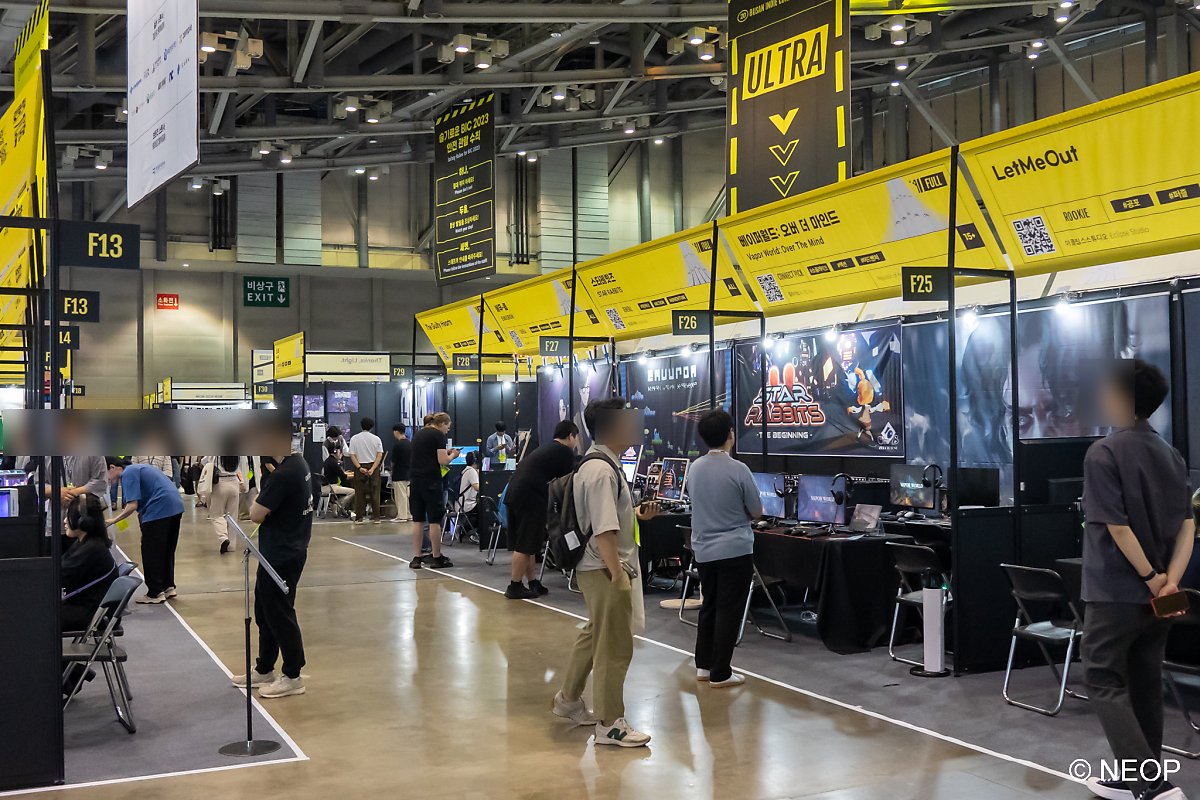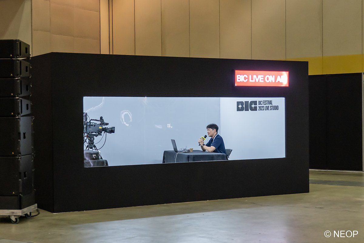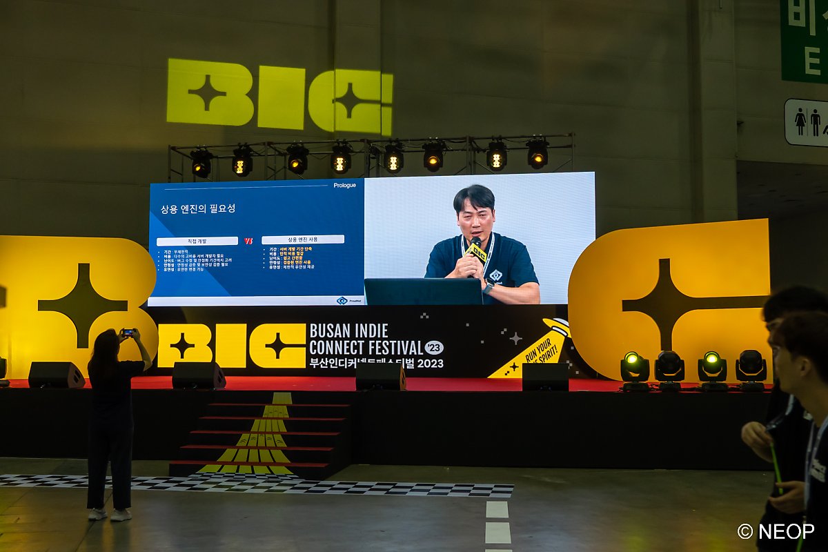 행사장으로 들어가면 거대한 BIC 마스코트 캐릭터가 반겨줍니다. 여러 가지 이벤트를 준비해놓았으니 여기저기 놓여 있는 표지판을 꼭 확인하세요. 행사를 다 즐기고 돌아가는 마지막에는 가장 좋았던 게임도 투표하시면 어워드 결과에 반영됩니다.