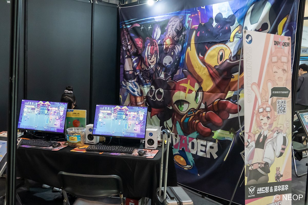 그다음은 엑스 인베이더라는 뱀서라이크 게임입니다. 예전에 버닝 비버라는 인디 게임 행사에서도 봤던 기억이 나는데, 이번에 보니 귀여운 토끼 캐릭터가 추가되었어요. 점점 성장하는 친구를 보는 것 같아서 기분이 좋습니다.
