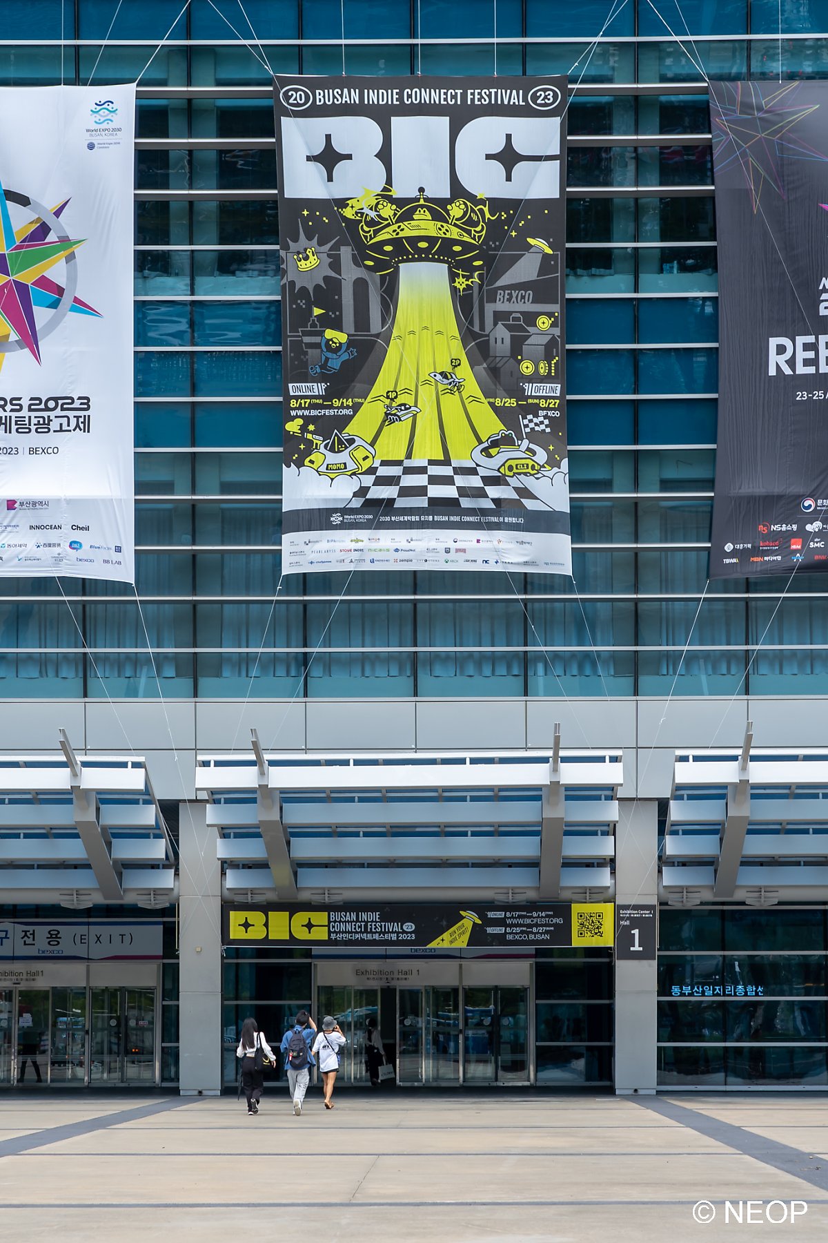 부산 벡스코에서 현수막이 걸린 제1전시장 쪽으로 입장합니다.