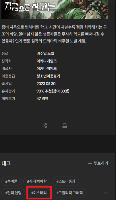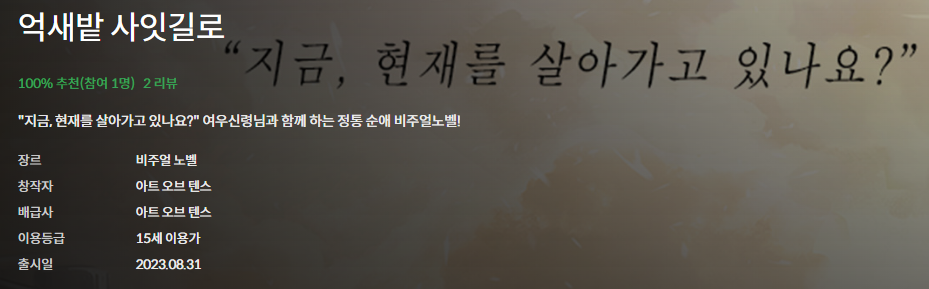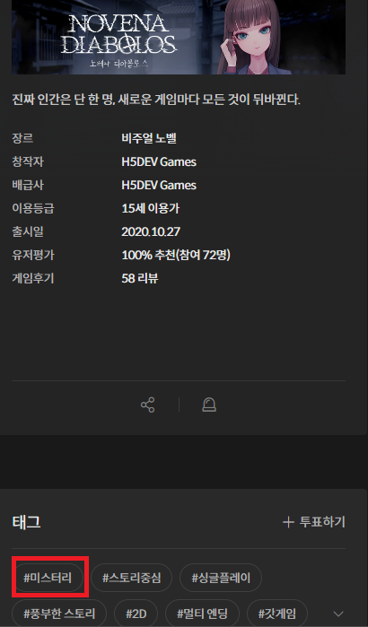 지금은 여름이죠. 일종의 납량 특집 같은걸 계획하지 않았나 싶은데 빅딜 이벤트 등이 생겨서 그냥 통합한 것이 아닐까 예측해 봅니다. 이미 빅딜로 풀린 지우학과 30일에 빅딜로 풀릴 노베나 디아볼로스. 둘 다 비쥬얼 노벨 중에 미스테리물이죠. 사실 스토브 인디하면 비쥬얼 노벨이 생각나기에 비쥬얼 노벨 중 대표작들 중에서 미스테리물을 고른게 아닐까 싶습니다.