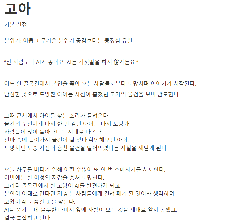 챕터 2의 주인공인 고아의 경우엔 AI가 금지되며 생긴 실질적 생활 속의 문제를 본격적으로 드러낸다고 볼 수 있겠네요.