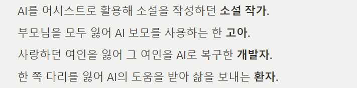 소설 작가는 AI가 사라짐으로써 생계에 문제가 생긴 상황이며,