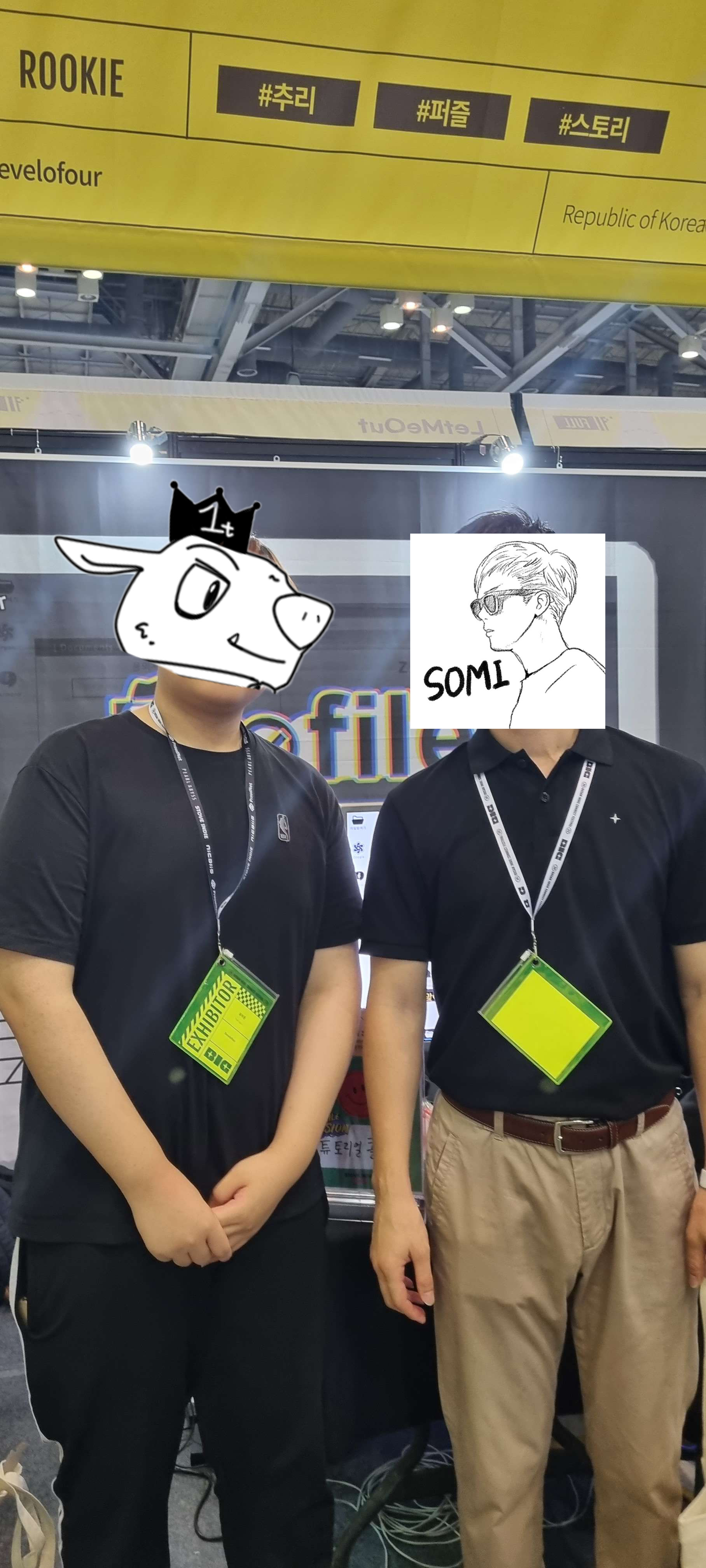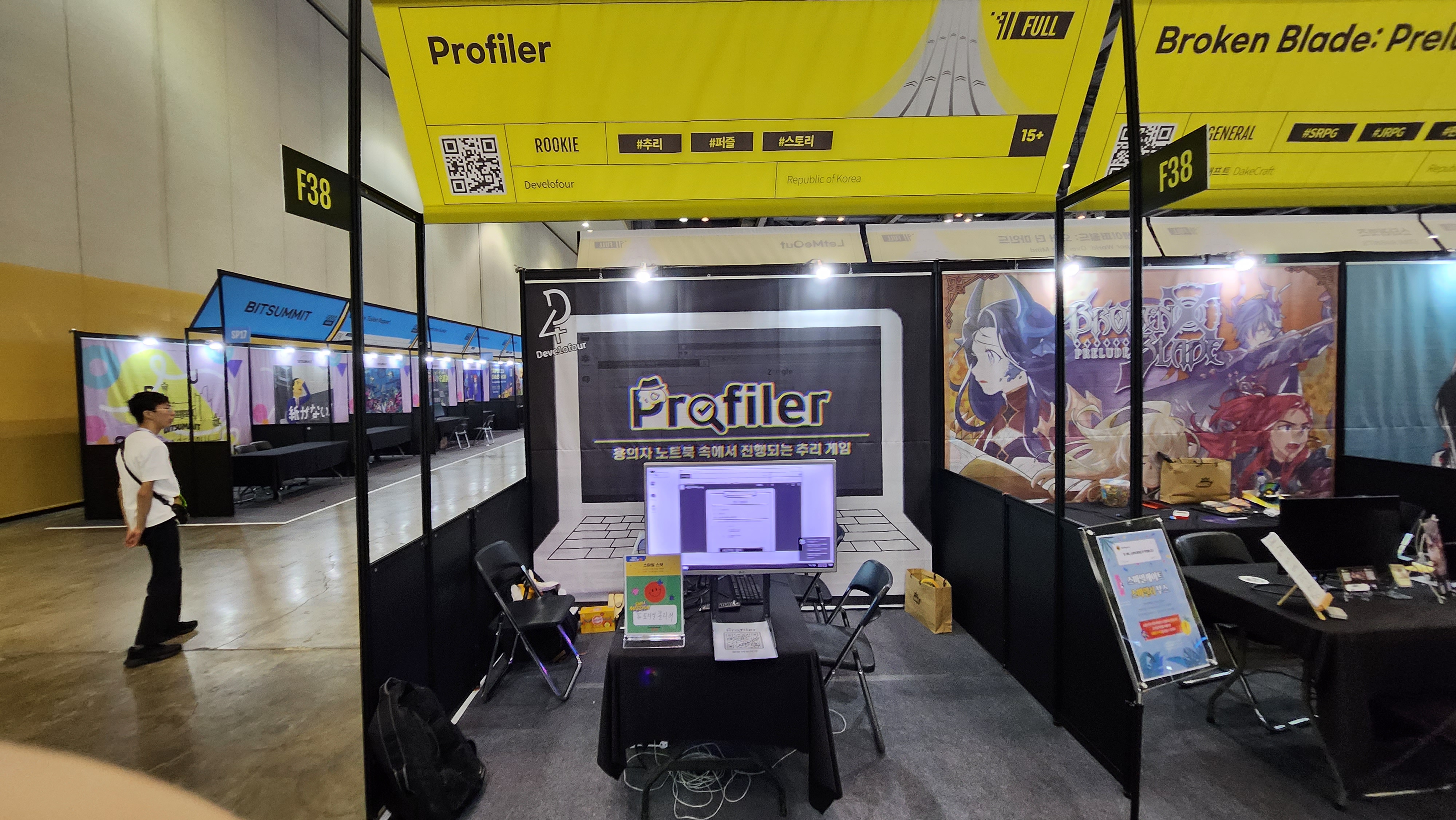 갑자기 어떤 한 분이 오셔서 플레이 영상을 자세히 관찰하시더니 저에게 물었습니다. "혹시 레퍼런스 게임이 뭐에요?" 그래서 저는 레플리카를 참고해서 제작했습니다 라고 답했습니다. 그랬더니 그 분이 하신 말이 "아 제 게임." 이셨습니다. 그래서 혹시 SOMI..? 라고 물어보니 맞다고 하시더라고요. 정말 많이 깜짝 놀랐습니다. 제가 프로파일러를 제작하면서 많이 참고한 게임인 레플리카 제작자 분을 여기서 만나게 될 줄 몰랐습니다.