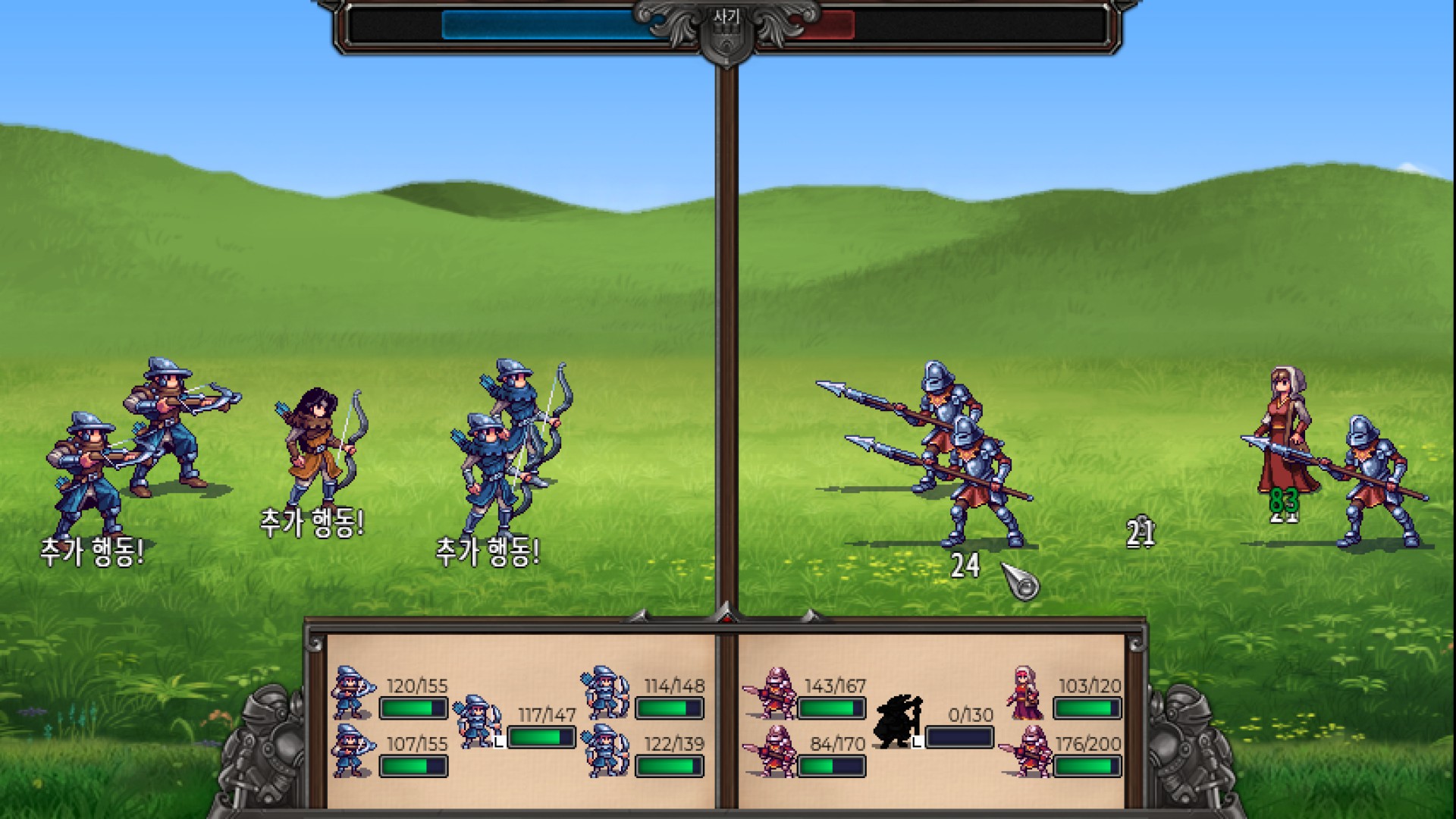 전투는 공격 -> 반격 -> 마법&회복 -> 재 공격 -> 재 반격 순으로 이어집니다. 그래서 전열 힐러 둘을 넣어두면 정말 오래 버팁니다.