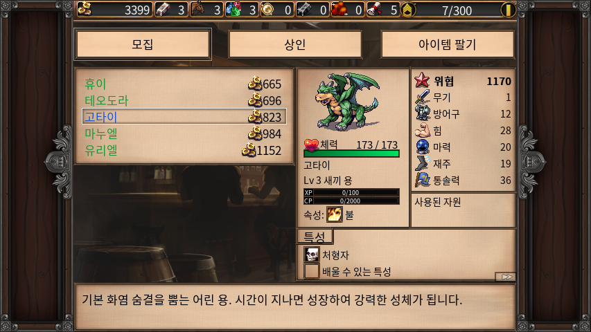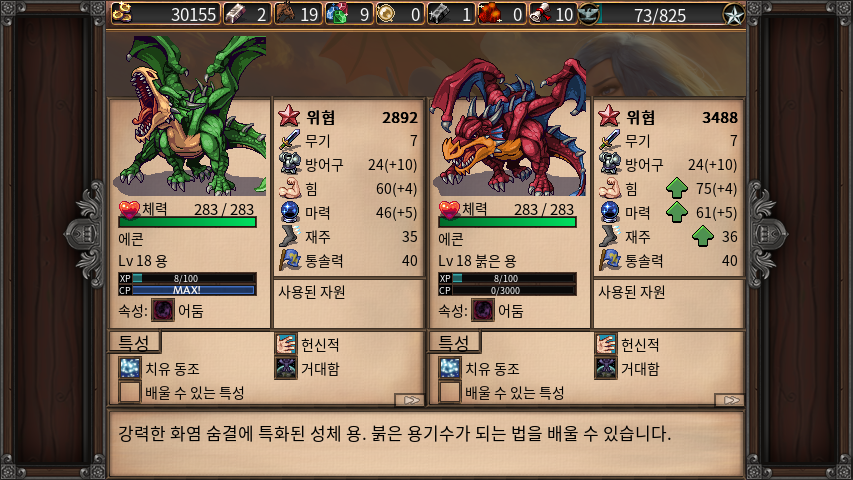 그리고 용도 3단계 까지 승급 시키면 마법사와 비슷한 활약을 하고 드래곤 만으로 부대를 구성하면 비행이동이 가능하다는 장점이 있는데 드래곤은 천막 상점에서 일정 확률로 등장하니까 참고하시기 바랍니다.