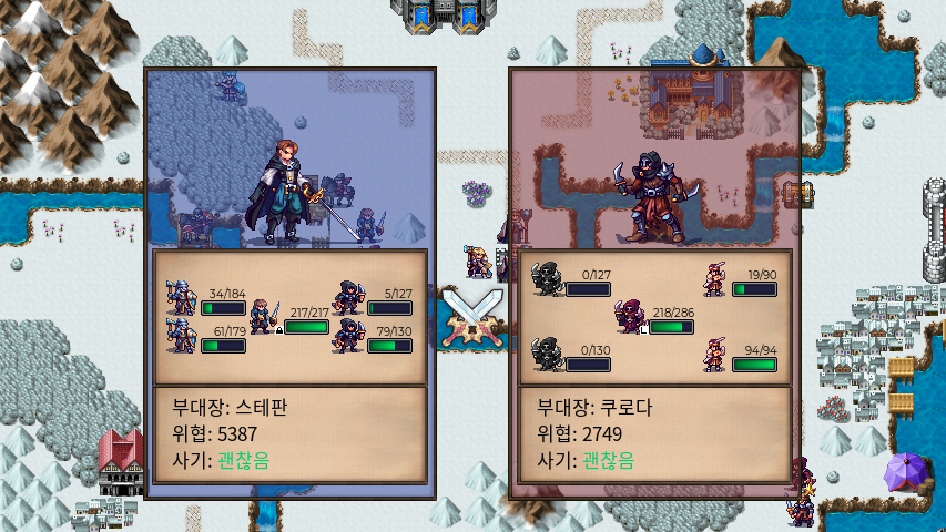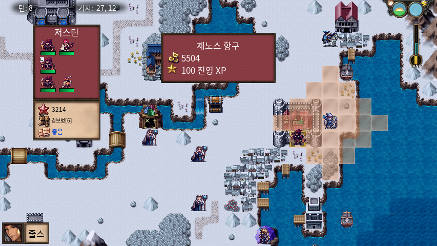 그리고 제노스 항구는 저 위치에 궁수를 배치하면 항구를 막고 있는 부대를 공격할수 있으니 궁수 부대를 둘 이상 운용 하고 있다면 참고 하시기 바랍니다.