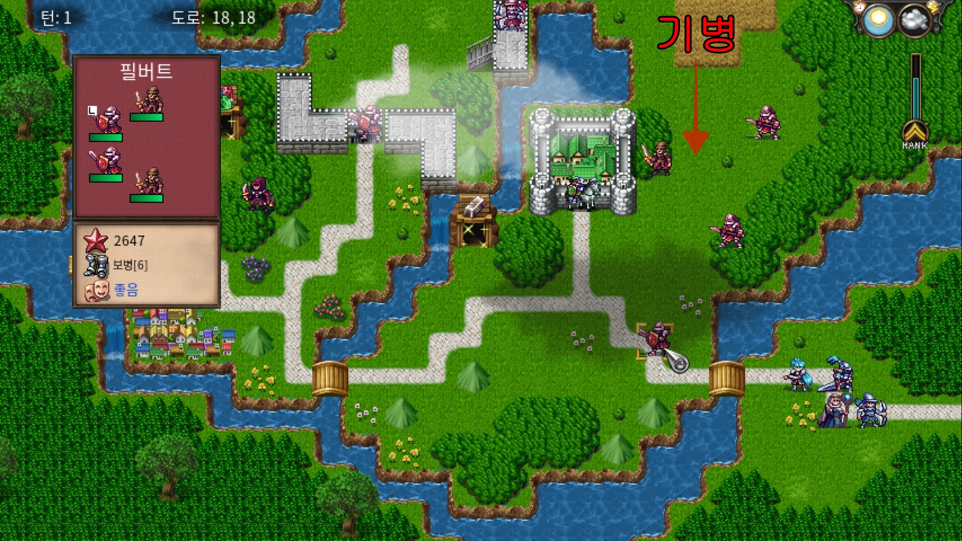 몇턴 진행하면 언덕에 올라가면 두 명의 아군이 추가됩니다.