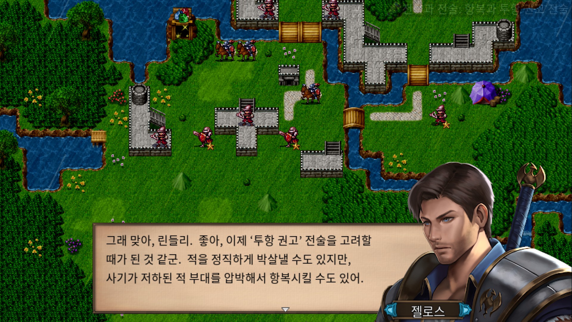 3장은 항복 권고를 배우는 튜토리얼 스테이지입니다. 지금까지 배운 것을 바탕으로 싸우면 어렵지 않게 완료할 수 있을 것입니다.