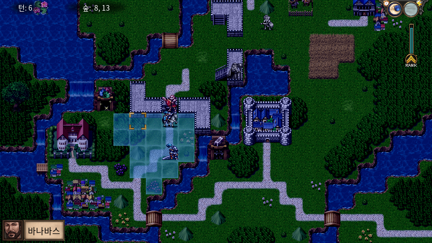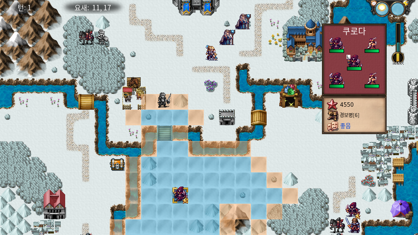 두 번째 턴에 1~3장까지 싸웠던 아군이 도착하고 이들로 동쪽의 기마병을 제거한 뒤 남쪽의 요새를 지키는 도둑들을 적당히 유인해서 싸우면 됩니다. 도둑은 후방을 공격하지만 1~2칸 정도 부족한 위치에 있으면 적이 다가올 것입니다.
