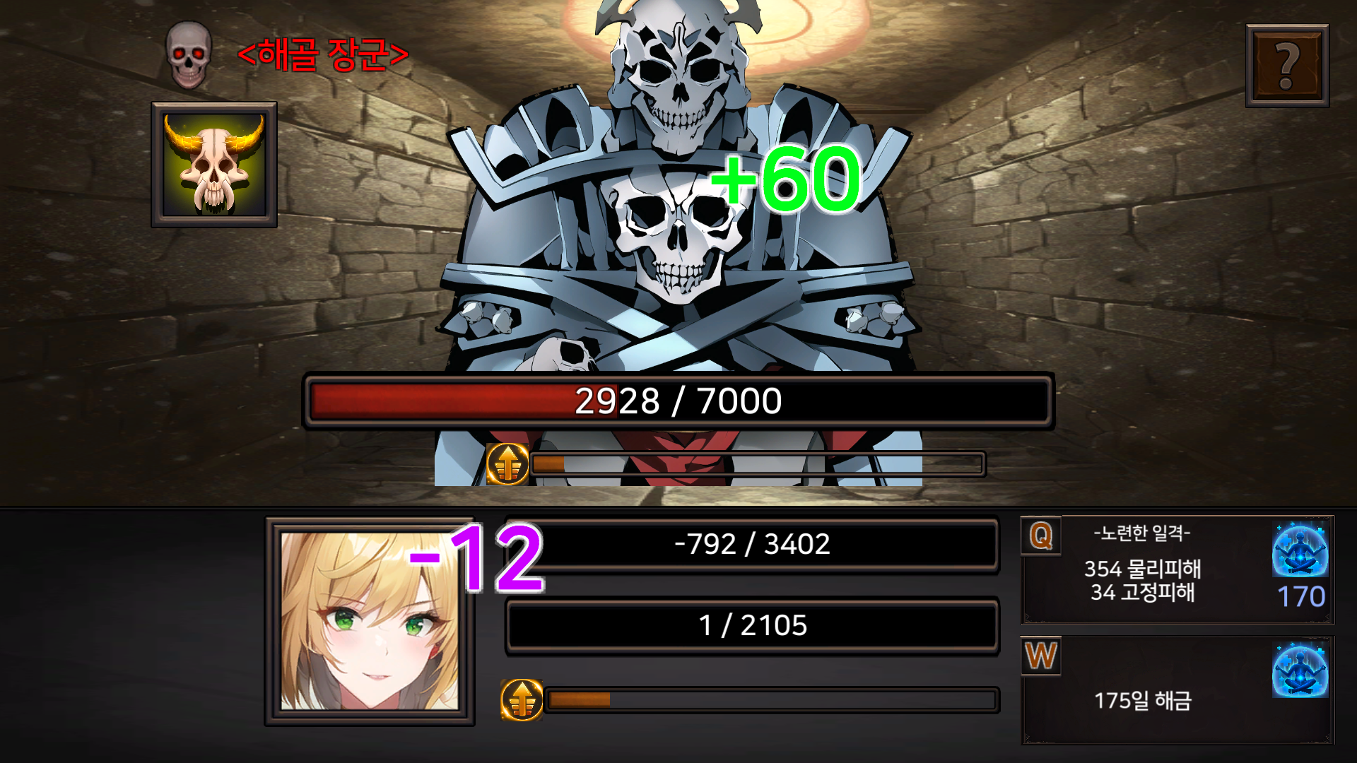전투 승리 보상 체력회복 4%로 130?인가로 회복되면서 살아남