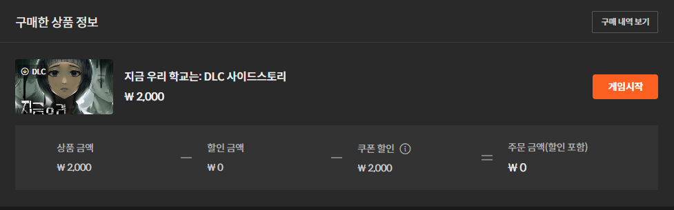 지난번에는 이렇게 ALTF4를 구매했었는데 이번에는 지우학 DLC를 구매했네요.