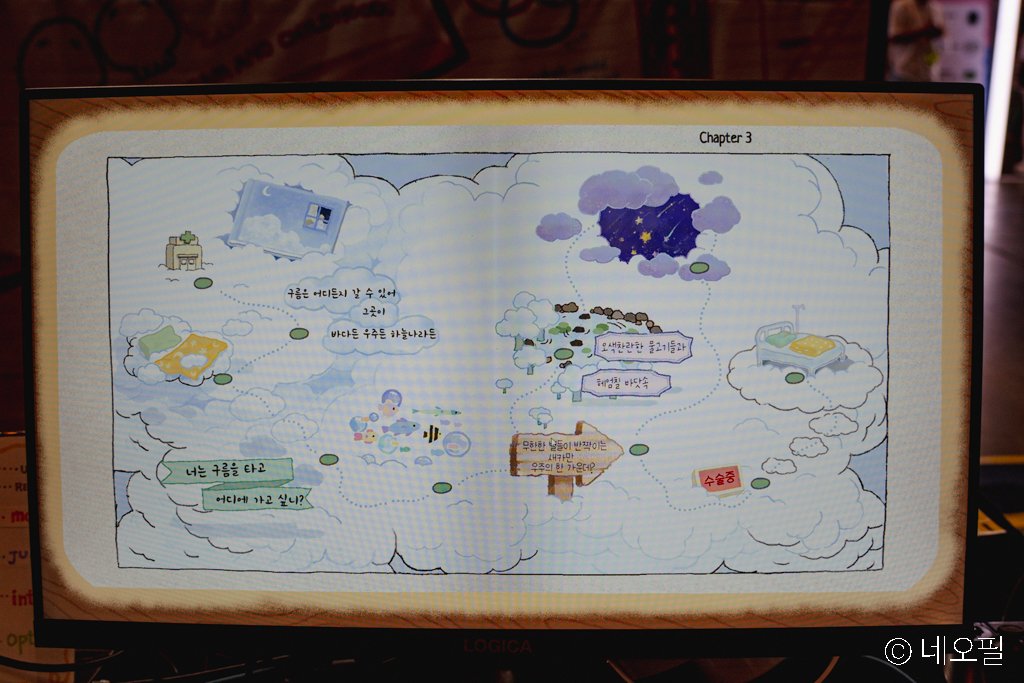네오필: 그래도 여기는 비교적 여유 있는 편일걸? 지스타 같은 행사하고 비교하면. 거기는 발 디딜 틈이 없어서 막 뒤뚱뒤뚱 걸어 다녀야 해.
