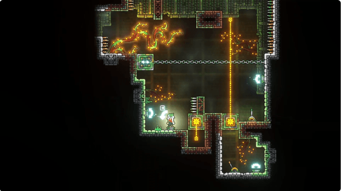 곳곳에 있는 중력 장치를 가동해 맵을 상하좌우로 바꿔가며 진행하는 퍼즐 플랫포머 게임이에요. 난이도는 제법 있었는데 각 구간마다 개념 세이브가 있어서 재미있게 문제를 풀어나갈 수 있었습니다. 맵을 돌리자마자 제한 시간 내에 빠르게 달려가야 하는 피지컬 요소도 존재했고, 이때 친구도 같이 플레이해서 서로 훈수 두는 재미도 있었습니다.