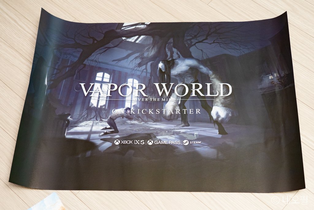 횡스크롤 방식과 아트 스타일이 바닐라웨어 게임(오딘스피어 등)이 떠올랐는데 소울라이크 게임이라는 반전이 있습니다. 횡스크롤이라서 왼쪽, 오른쪽으로만 회피할 수 있기 때문에 더 어려운 부분도 있었고요. 다른 부스와는 다르게 듀얼센스 컨트롤러를 제공하셨는데 확실히 진동의 맛이 찰진 게임이었습니다. 최종 보스를 잡았더니 게임 포스터를 주셨어요.