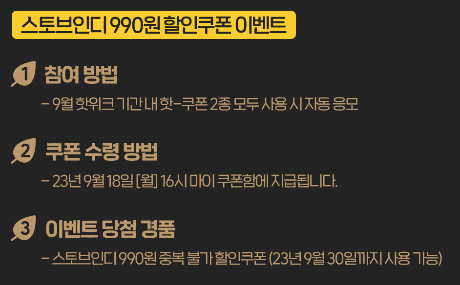 <9월 핫위크> 핫-쿠폰 2종 모두 사용한 분들에게 드리는 990원 할인쿠폰은 중복 가능한 쿠폰입니다.