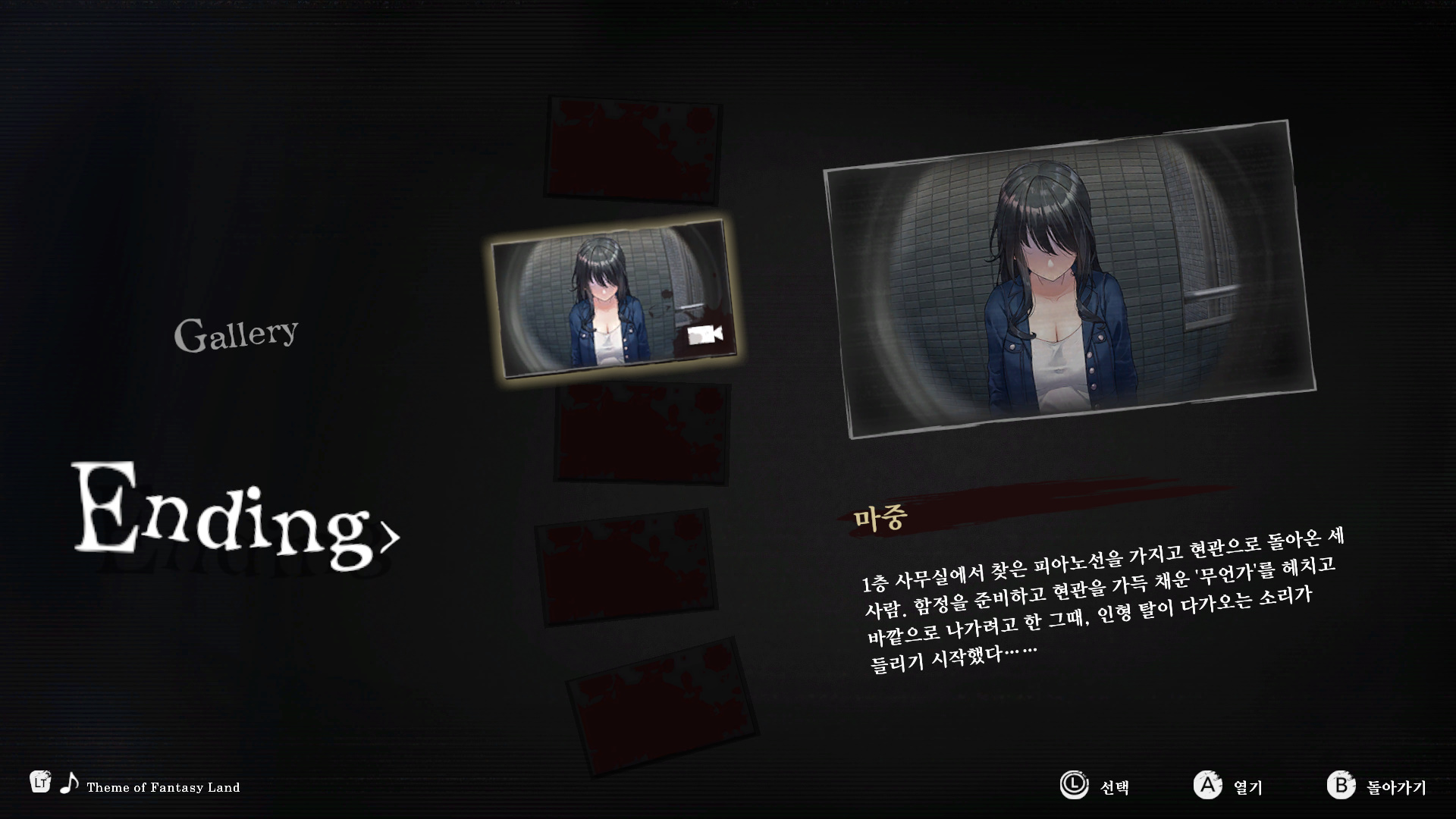 엔딩후에는 이 게임 다회차 요소가 있다는것을 보여주기 위해서 CG 갤러리와