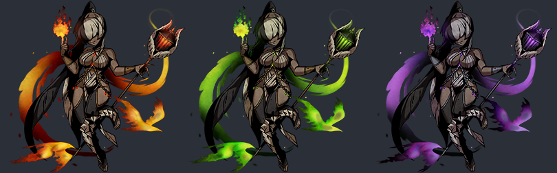 태양불, 늪독불, 저주불, 세 가지 속성의 불꽃을 능수능란하게
