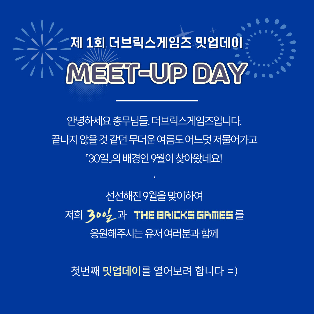 9월을 맞이하여 저희 「30일」과 더브릭스게임즈를 응원해주시는 유저 여러분과 함께 첫번째 밋업데이를 열어보려 합니다 😃