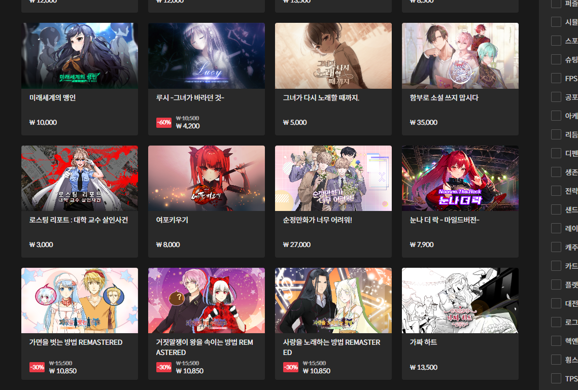 아니 ㅋㅋ 추천드릴려고 했던 플라워즈 시리즈와 폐심, 별소원 전부다 구매가 되어있어.. ㄷㄷ