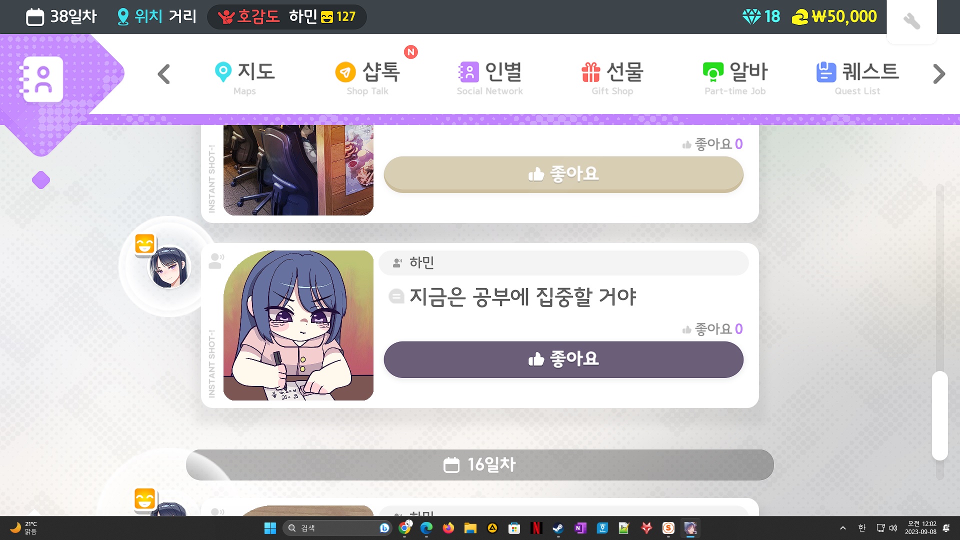 Minor bugs and sound breaking issues could have been checked just before release, but it's a bit disappointing that the review wasn't done during the delayed period. Also, the fact that the main character's name is fixed as Han Tae-pyung. I was really curious about the reason for differentiating it from the previous work. If there is no special reason, I feel that fixing the name is a minus in visual novels.