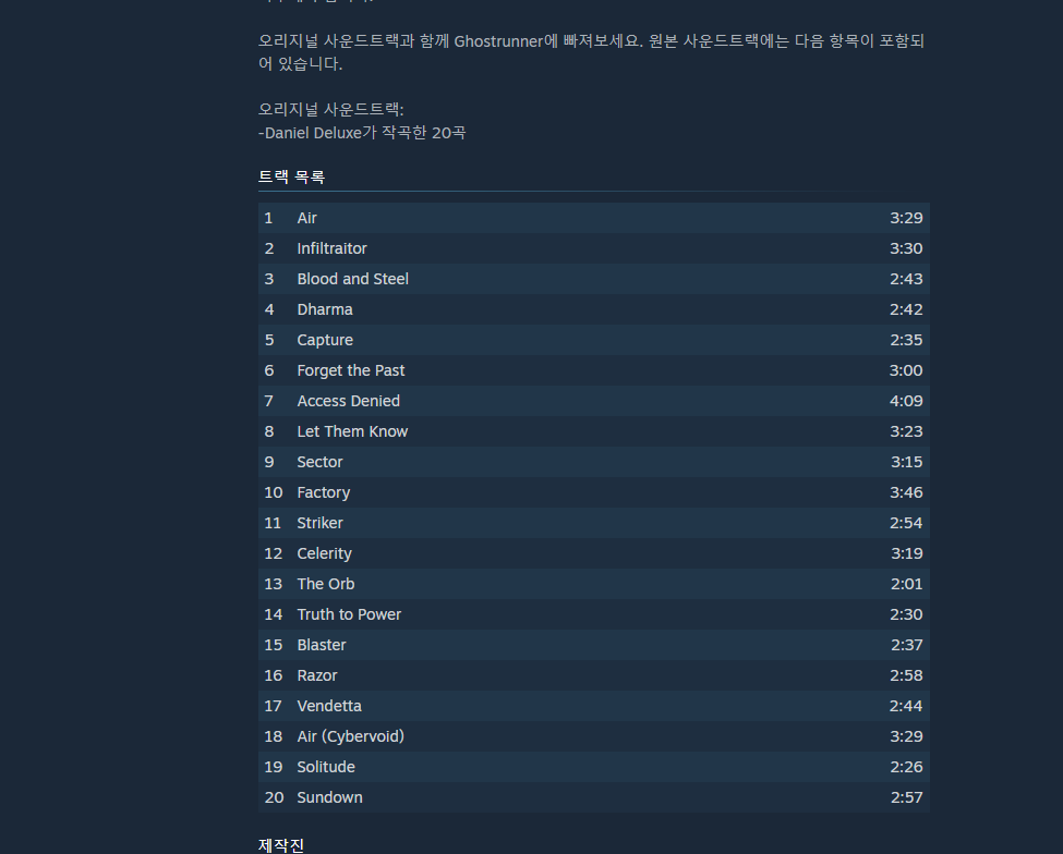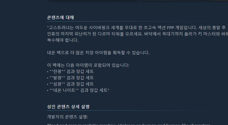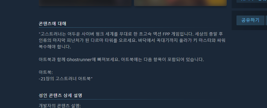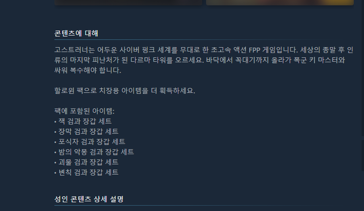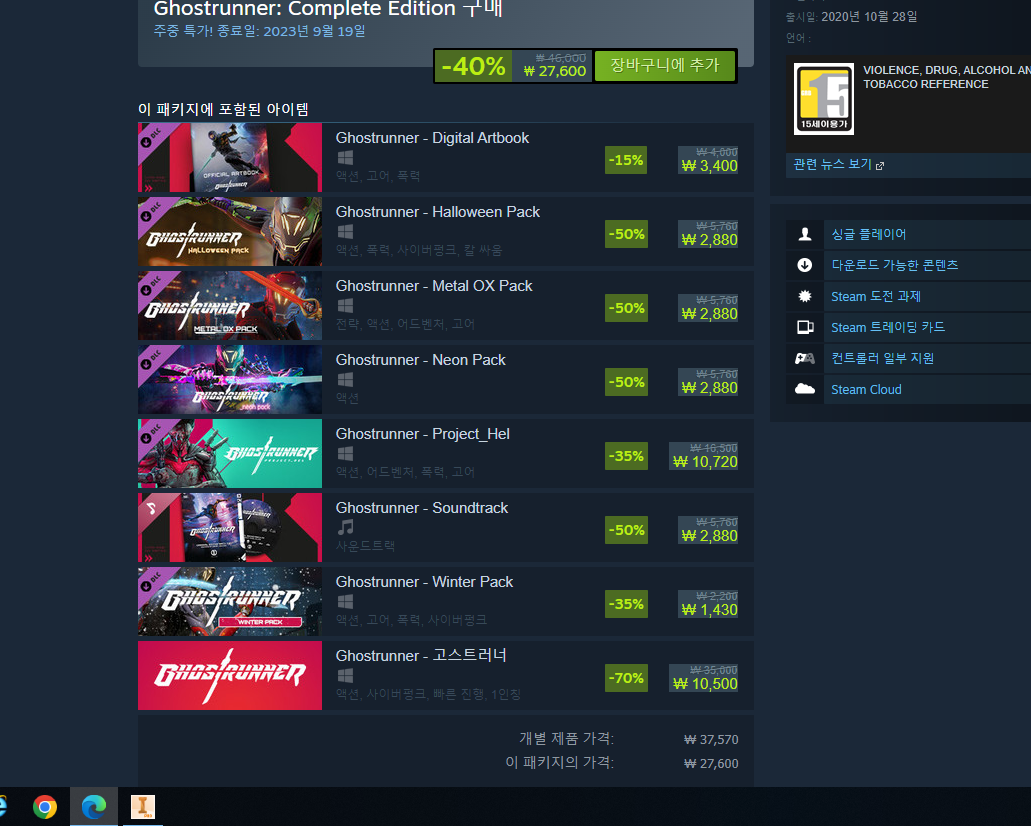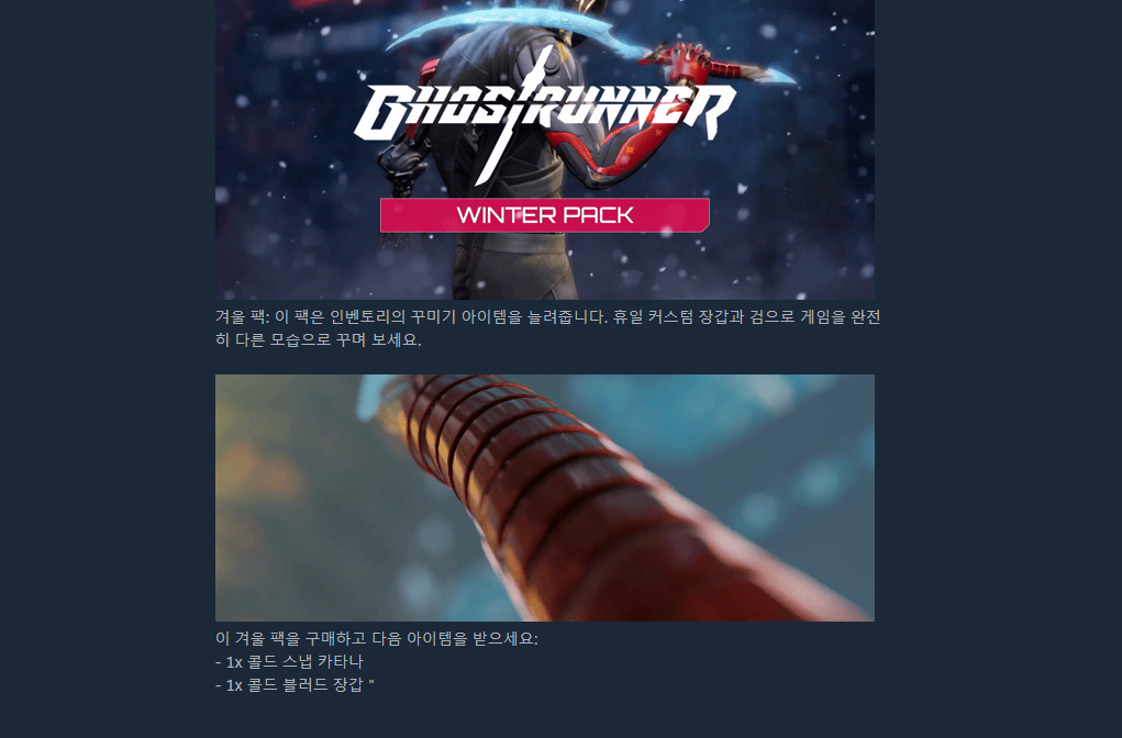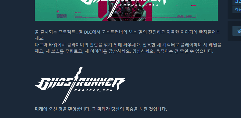 스토브 쪽이 있어요 지금 고스트러너: 컴플리트 에디션27600원 40% 할인해서 DLC정보 가지고 온거에요 정보가 안나와 있길래