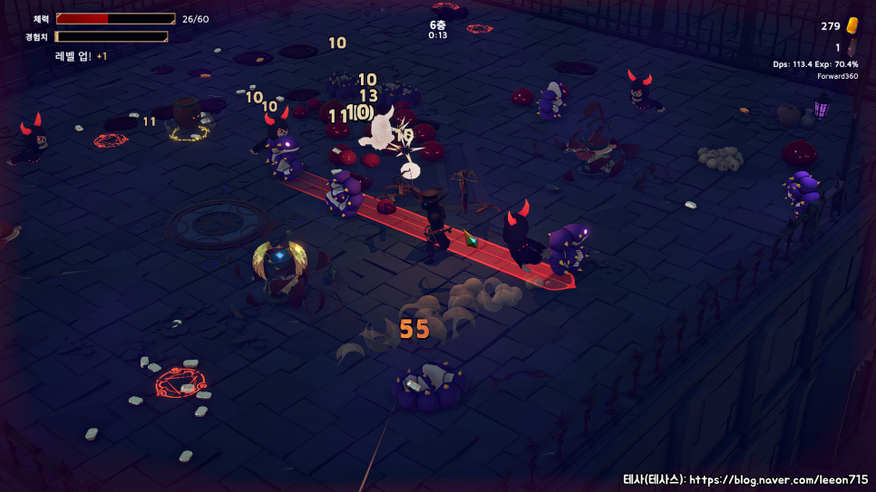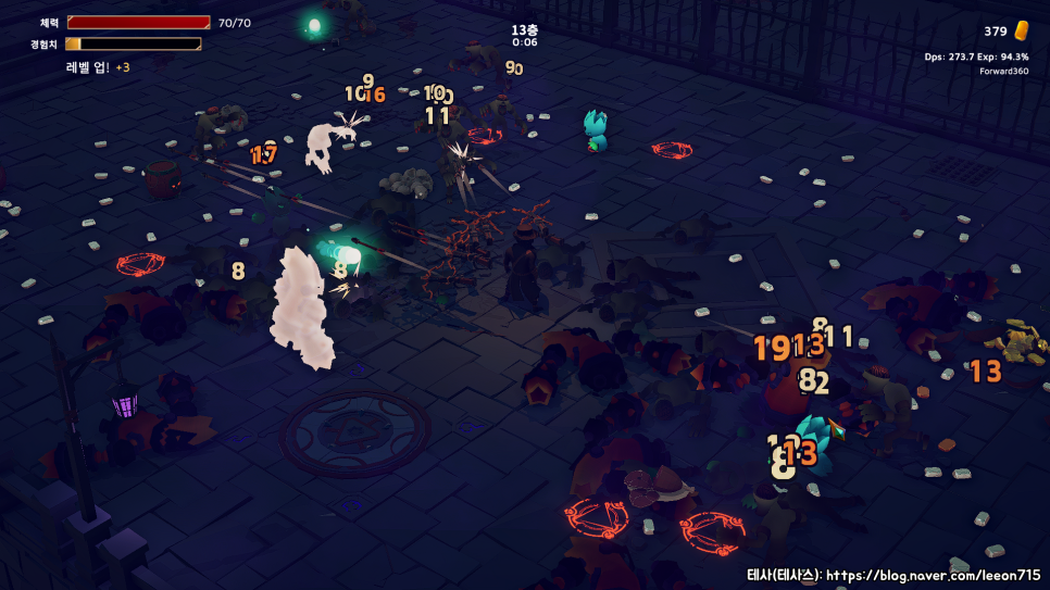 세번째는 크로스볼버+손 쇠뇌 빌드. 데미지가 전반적으로 유용하게 사용할 수 있습니다. 다만 공격 속도도 애매하고 무기 간 시너지도 보기에 애매해서 개인적으로 많이 갔던 빌드는 아닙니다. 대신에 투사체 성질을 가진 무기를 많이 구비할수록 사거리가 늘어나는데요. 따라서 부피가 작은 무기들을 구비하다보니 다가가서 전투해야 한다는 부담은 없습니다.
