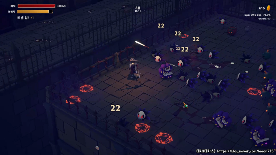 체력은 높으나 사거리는 약간 짧은 편입니다. 그래서 몬스터들한테 공격이 닿더라도 매우 치명적이지는 않습니다.