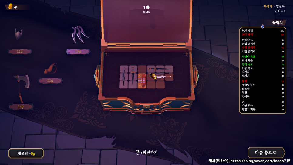 3. 이제 데미지랑 공격 속도는 무기만으로 커버가 될 겁니다. 소형 등불, 망원경을 구매하셔서 사거리 스텟을 최대한 올려주세요. 망원경은 회피 확률이 내려가기 때문에 되도록이면 초반 용도로만 써주세요.