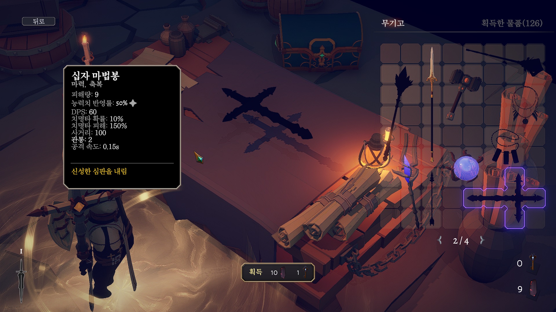 캐릭터 옆에 떡하니 떠 있는 십자 마법봉... 정작 무기고에서 개방을 하라고 합니다.