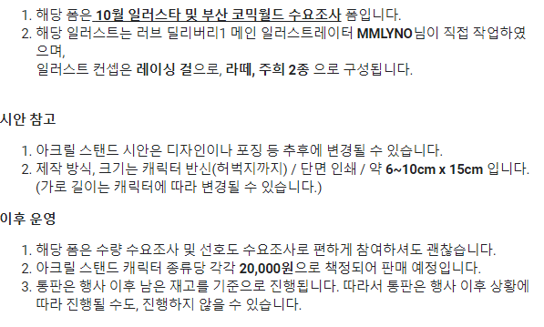 아크릴 스탠드 각 2만원에 팔 예정으로 수요조사도 했었네요