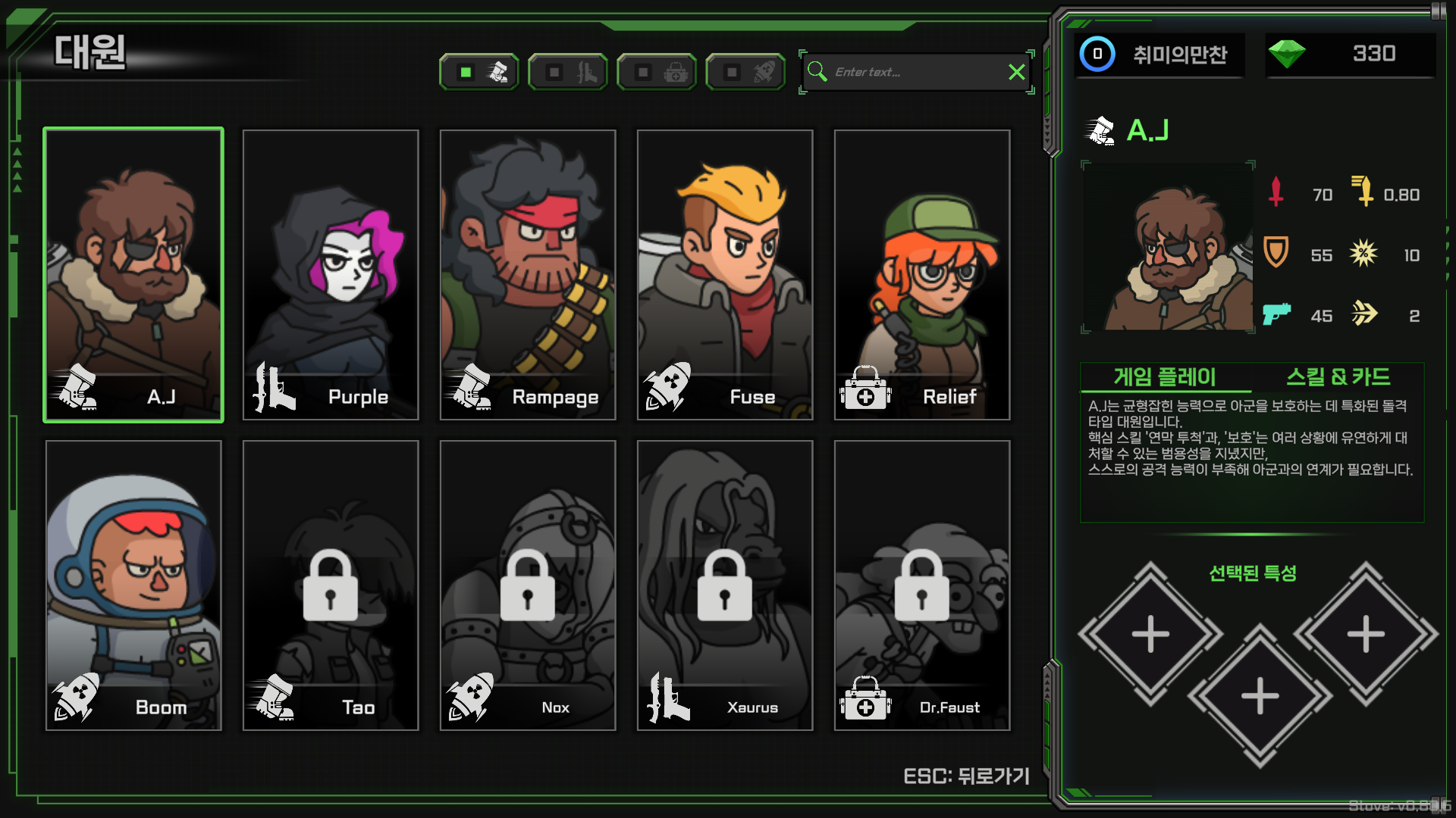 1티어의 경우 돌격 - A.J, 지원 - Relief, 사수 - Purple 입니다.