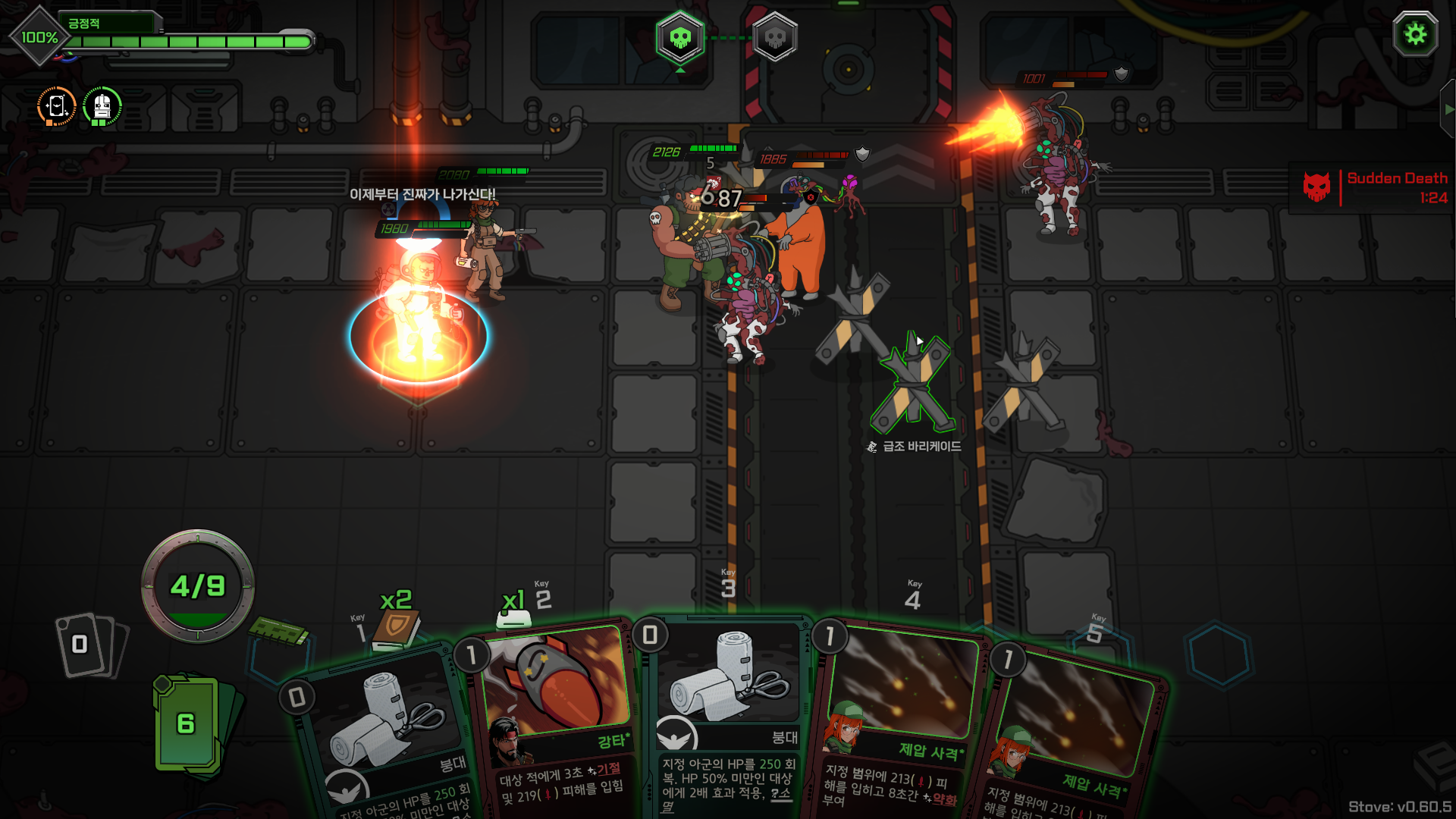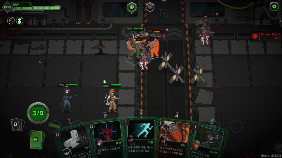 계속 대원들의 피와 적의 피가 깎여나가 순간순간마다 카드를 잘 사용해야하며,