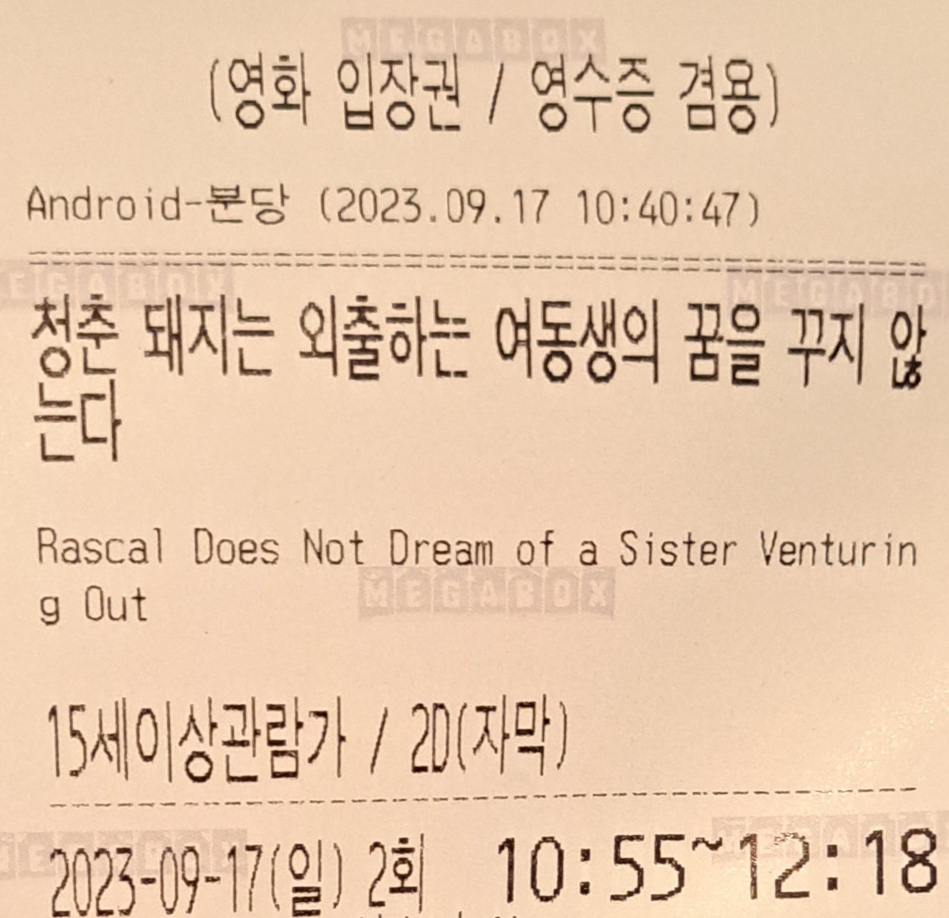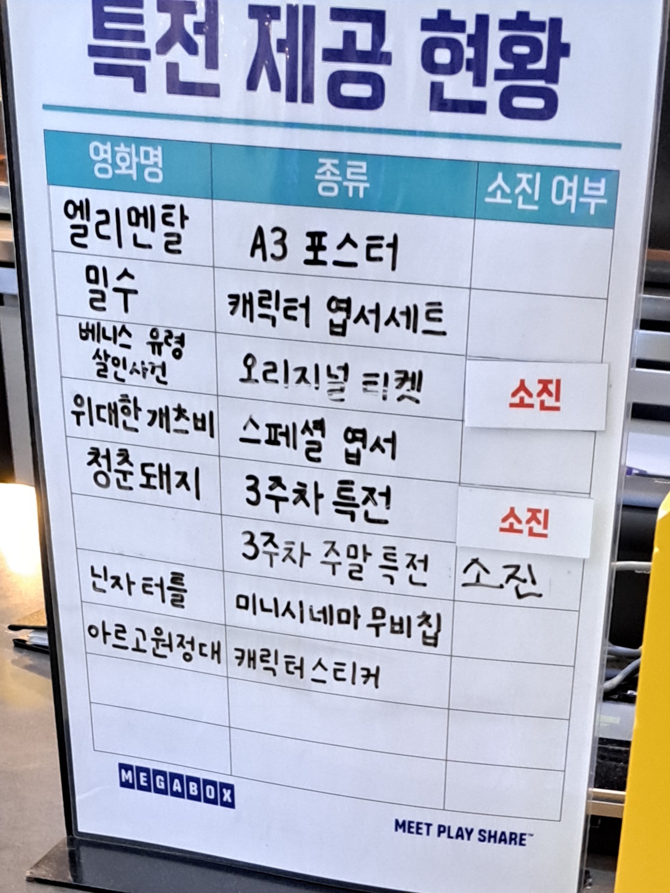 (엔딩 크레딧을 듣고 특전을 받으려고 갔지만...소진이 된 흔적을 목격하고 집으로 쓸쓸히 돌아갔네요..)