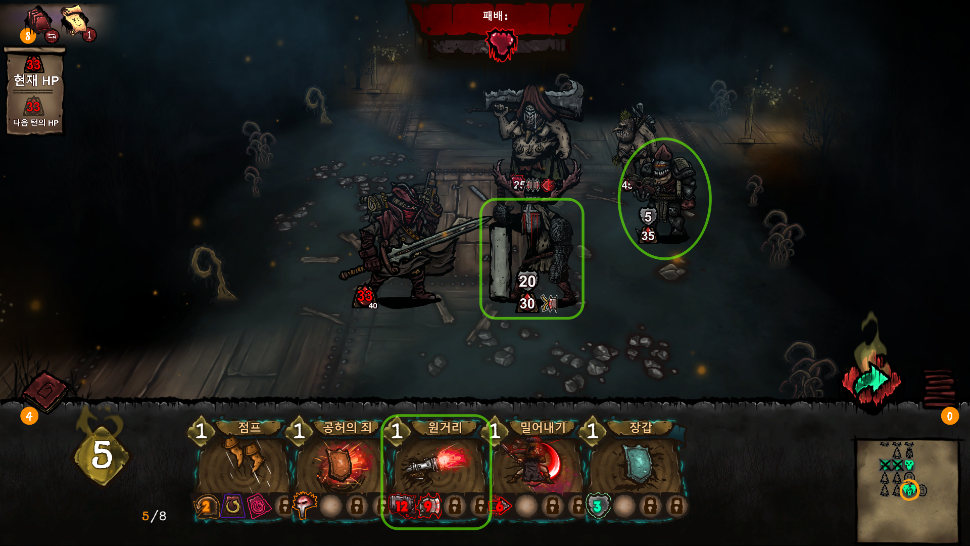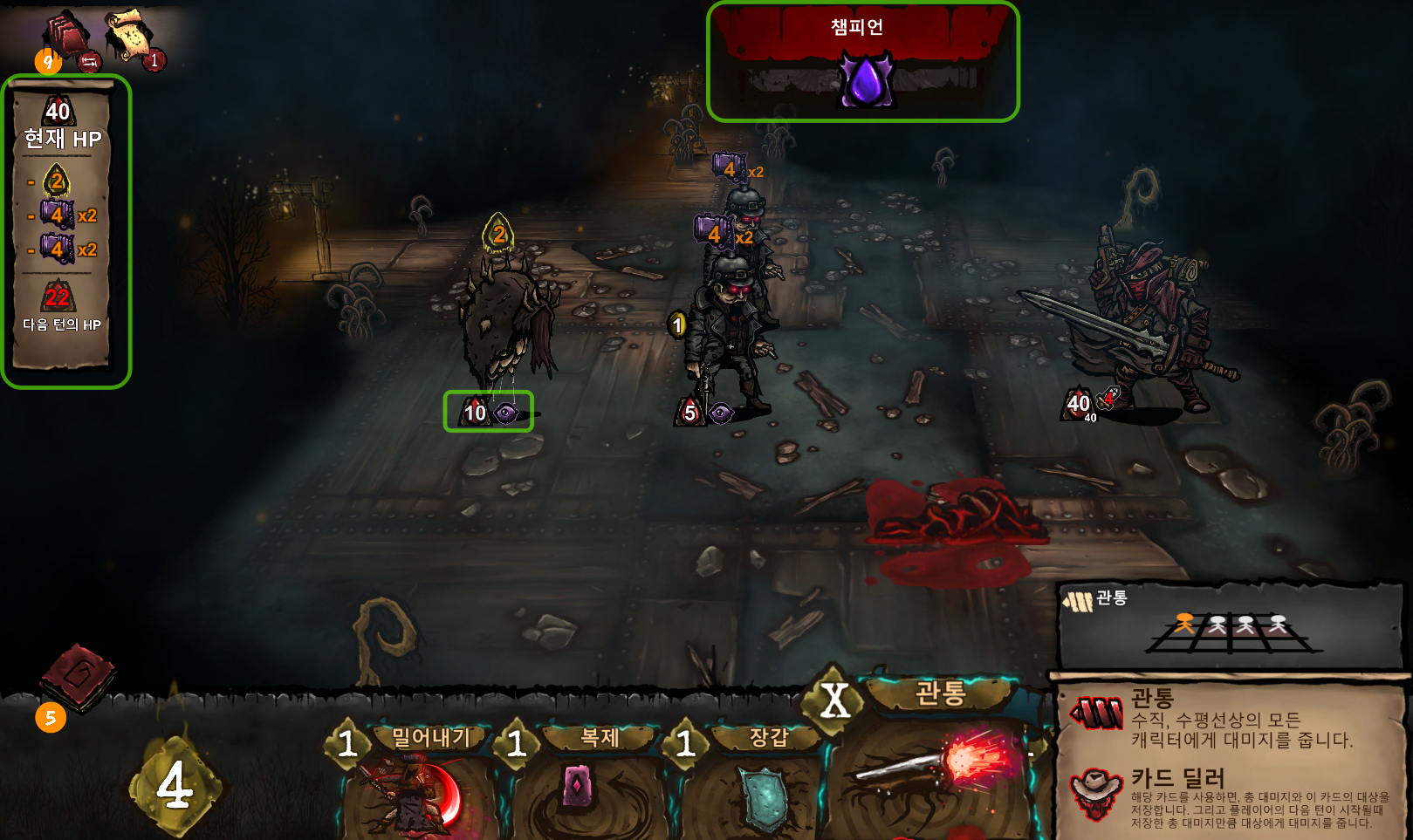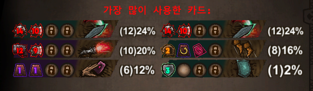 장갑의 경우 1턴만 유지가 되기 때문에 적이 공격이 끝나면 사라지기 다루기 어렵기 때문에 웬만하면 순수 공격 카드 위주로 쓰는 게 편합니다.