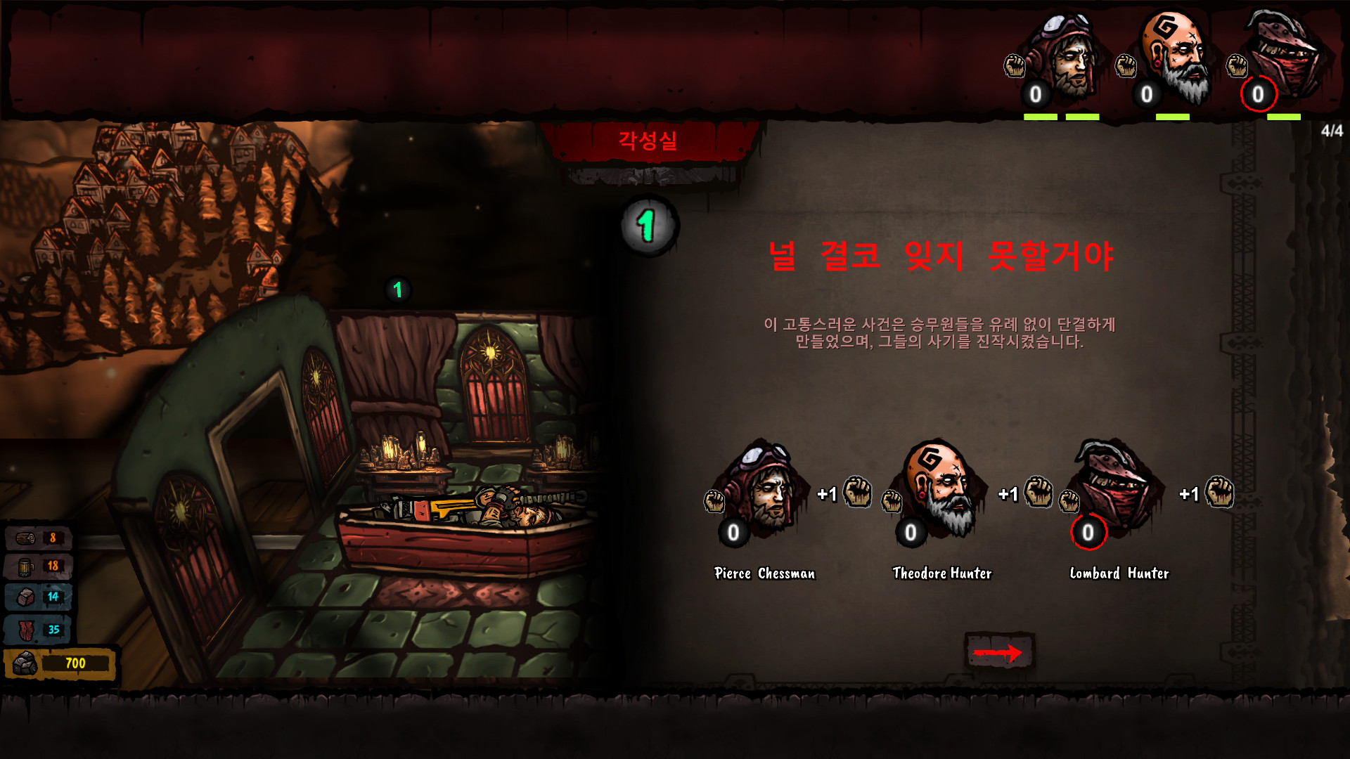 <장례에 참가한 대원들의 능력이 올라갑니다.>