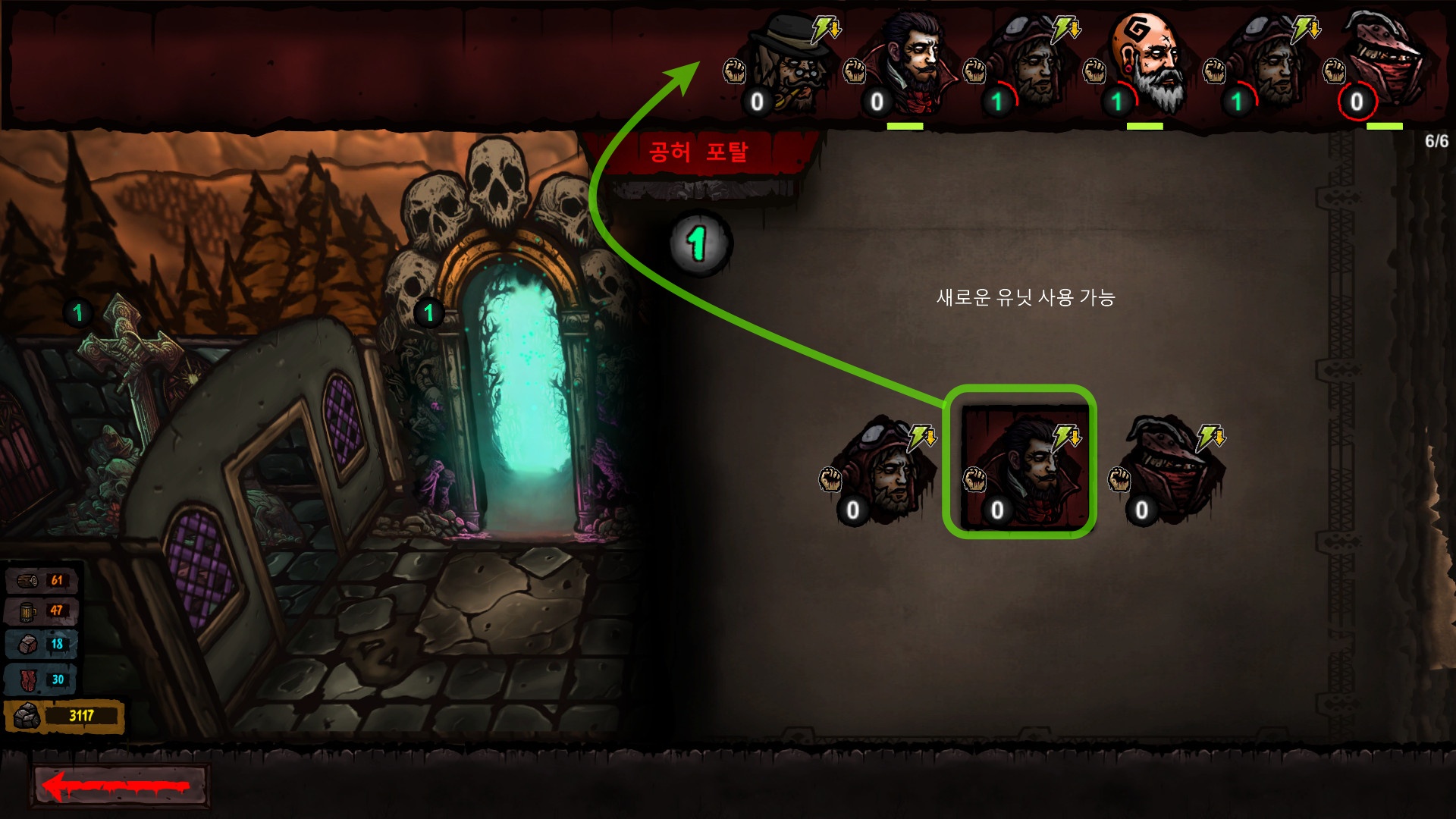 공허 포탈은 새로운 동료를 늘려주는 시설입니다. 주의할 점은 새로 합류되는 동료는 지친 상태로 들어온 다는 것과, 동료를 선택 후 끌어서 올려야 추가된다는 것입니다.