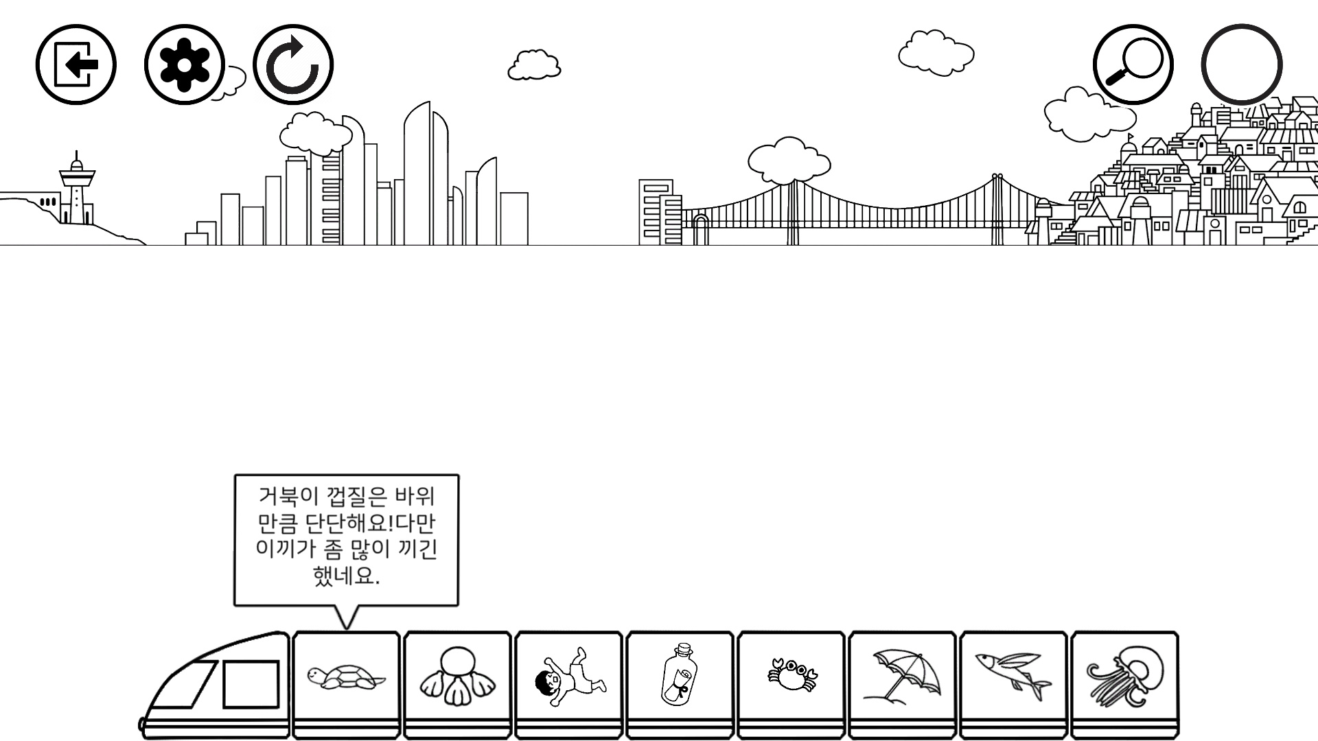 아래 기차(열차 또는 ktx) 같은 버튼을 누르면 기차속 숨은 그림 힌트와, 숨은 그림 힌트 또는 배경에서 찾은