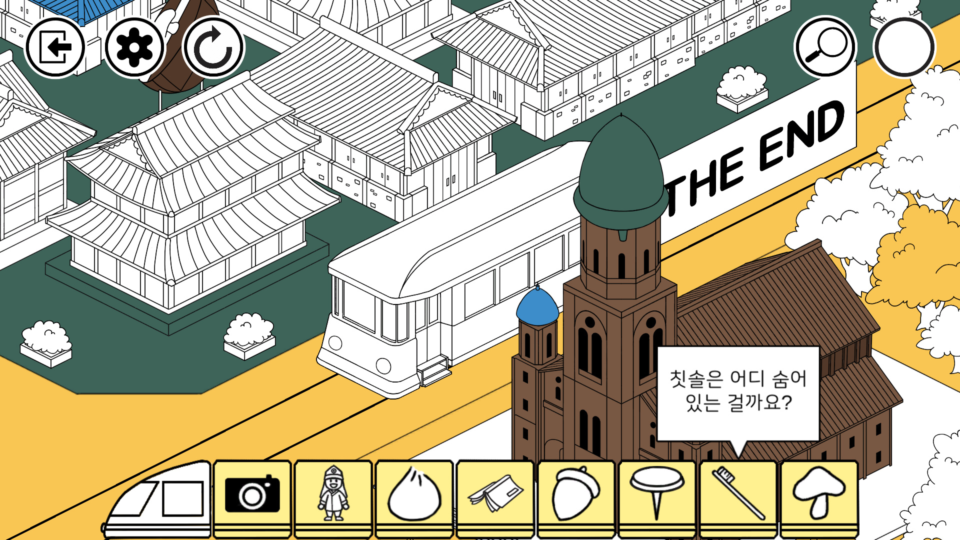 돋보기로 기차속 숨은 그림 힌트를 잘 모를떄 힌트를 해제하여 유저들에게 막힘없이 숨은 그림속 색깔을 찾을수 있게 합니다.