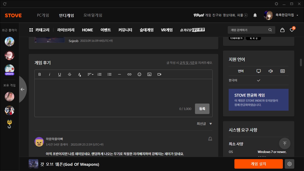 스토브 인디의 게임을 플레이하고 리뷰나 게임 추천글을 적는다면, 어떤 게시판에 작성 하는게 맞는 걸까요?