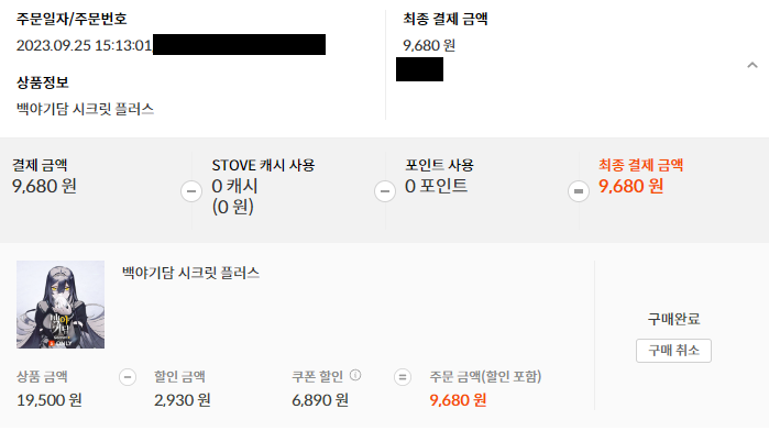 쿠폰 소화는 백야기담 시크릿 플러스로 결정했습니다.