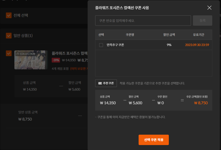 그런데 컬렉션은 쿠폰 적용에 제한이 있다는 걸 깨닫고
