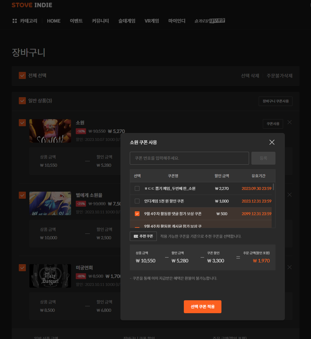 소원 쿠폰 적용하고 다른 것도 적용 했나보네?