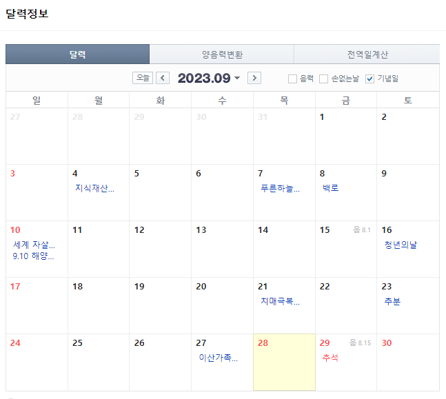 추석연휴네요 근데 달력보니 공교롭게도 추석연휴 전날인 어제가 이산가족의 날이었네요 ㄷㄷ