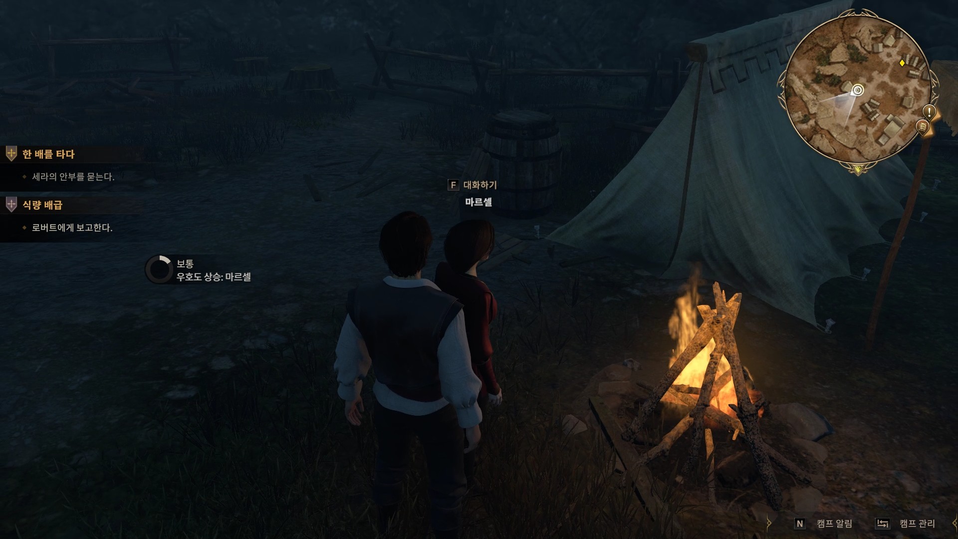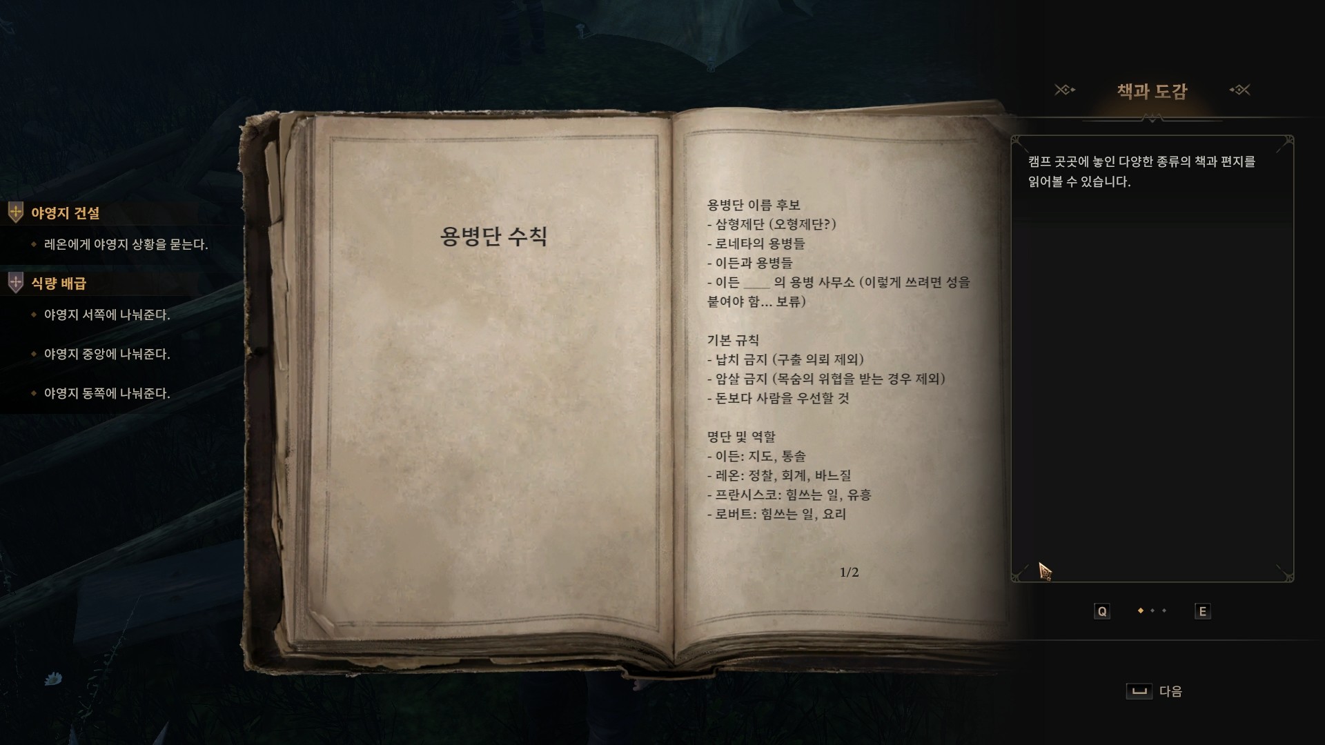 물론 우호도나 읽을 거리 같은 요소들을 만날 시간에 한 번의 전투라도 더 진행하겠다고 생각하는 분들은 캠프를 빠르게 탈출해 계속해서 전투를 풀어나가는 것도 얼마든지 가능해요.