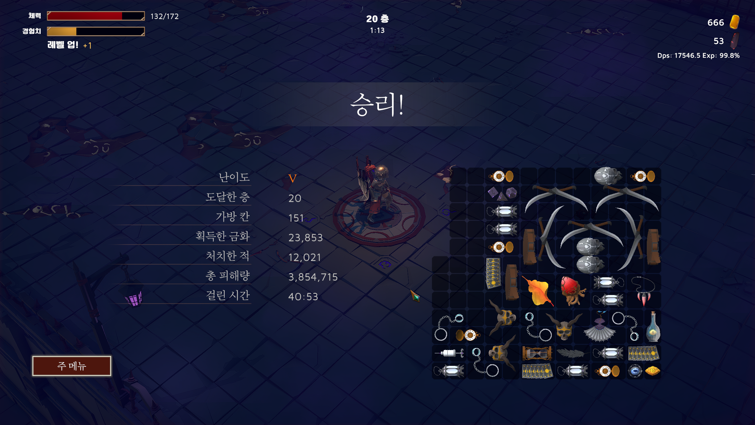 이속감소시 능력치 증가템을 맞추기 시작하면 움직이지 않고 마지막 보스까지 제자리 사냥이 가능합니다.
