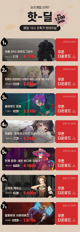 그러게요 제 취향에 맞는 게임들이 나왔으면 좋았을꺼 같아요 아쉬운 부분이죠.. 다음 핫위크때 기대해야죠!