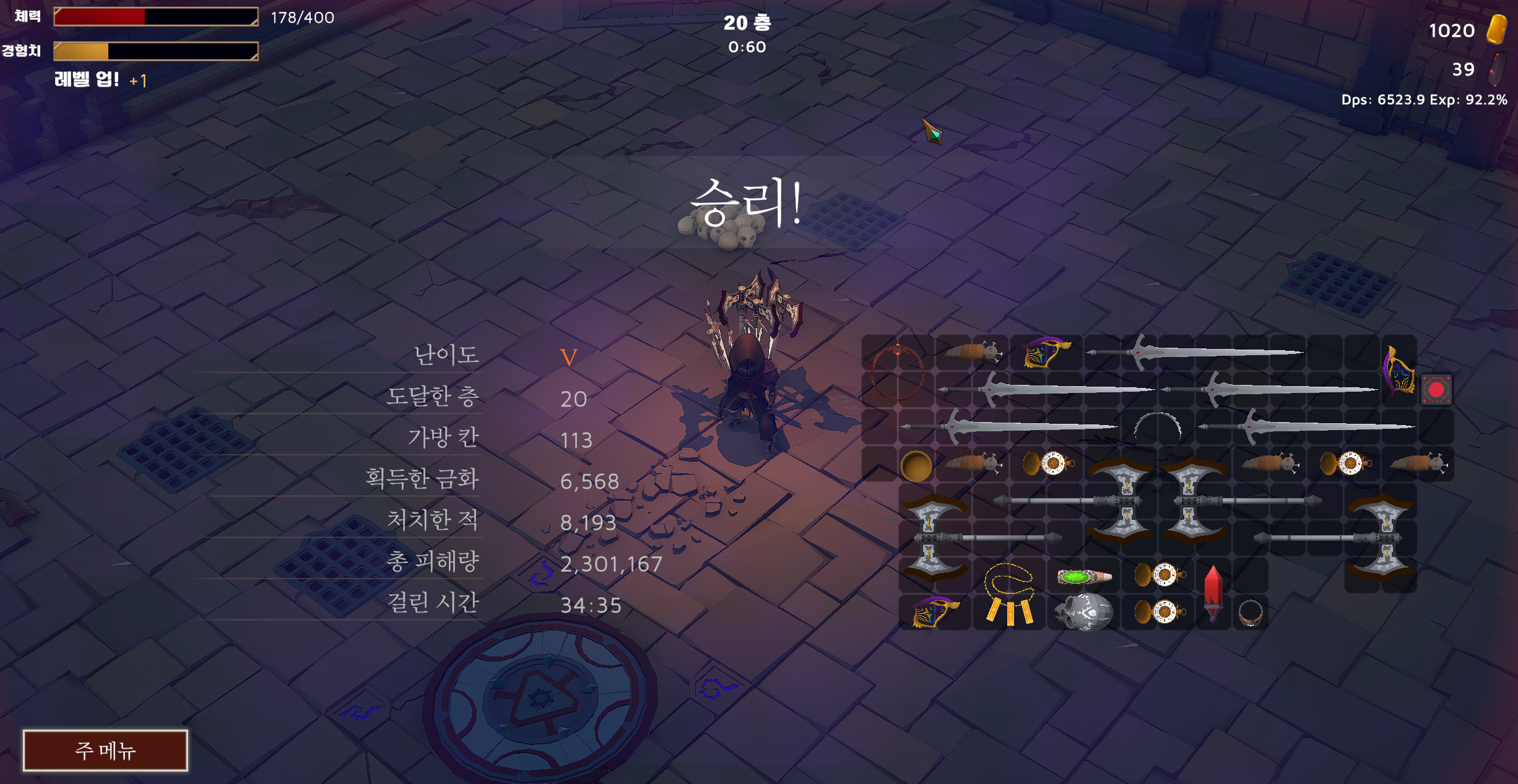 20라운드 전에 대형 도끼 4~5개 , 대검 4~5개 해서 압도 9옵션 맞추면 누구나 클리어 가능